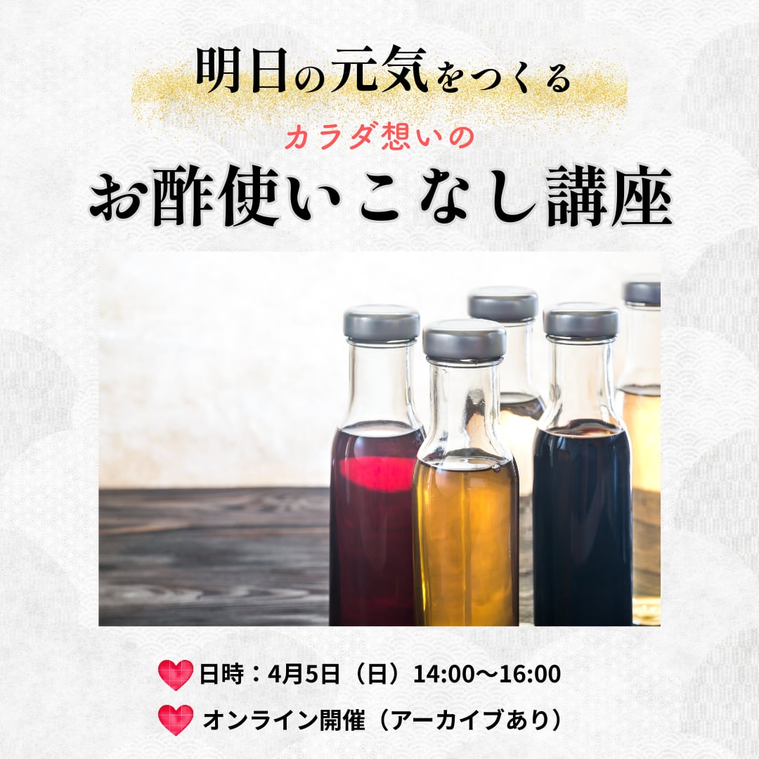 こちらは4月5日(日)に開催される【お酢使いこなし術講座】のお申込フォームです。